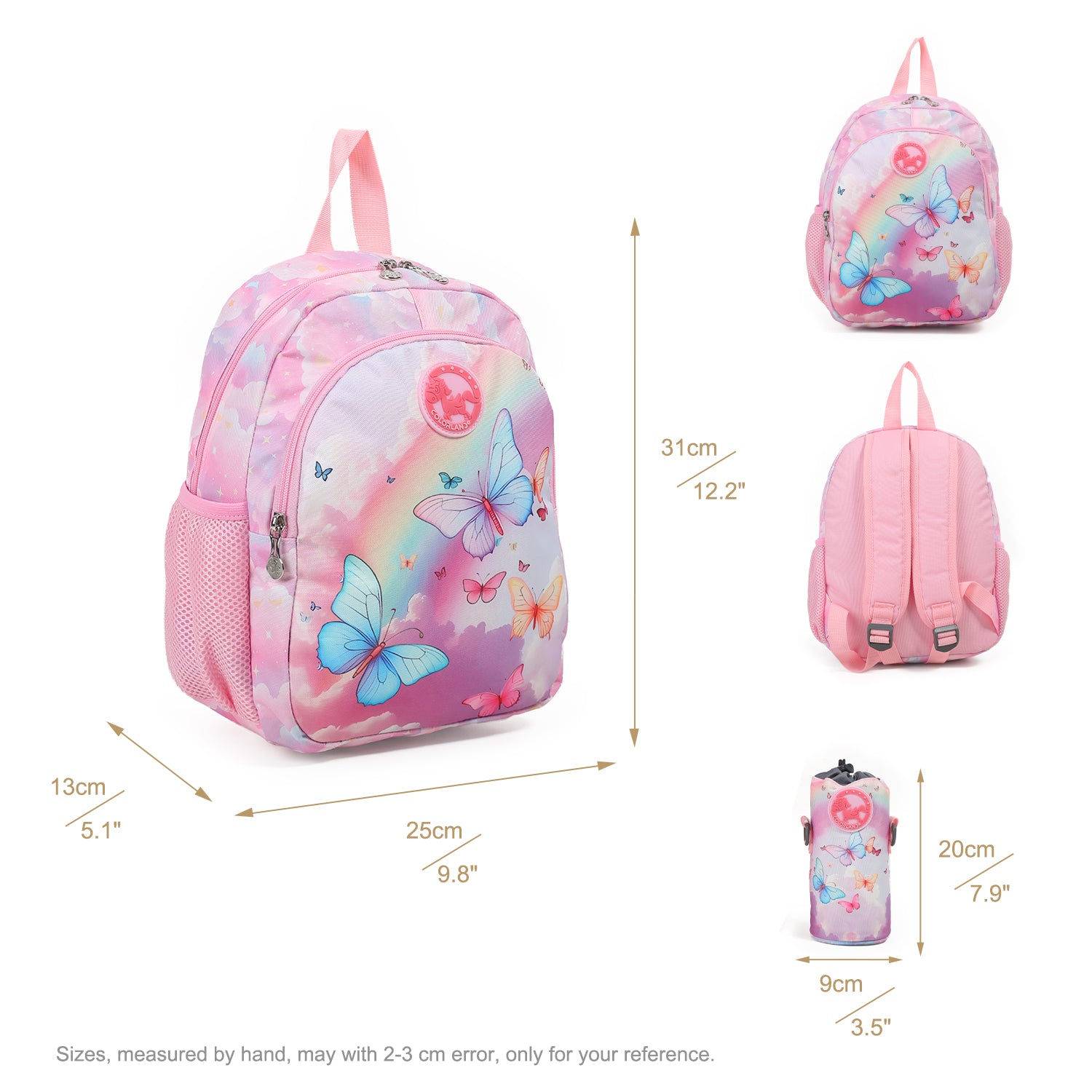 The Colorland 12" MagicMates backpack set for preschoolers features three playful themes—unicorn backpack, butterfly school bag, and Astronaut kids backpack—each paired with a matching water bottle holder. Designed for children aged 3–7, it’s lightweight, durable, and ideal back-to-school gear for nursery and early primary learners across UK, EU, and global markets.