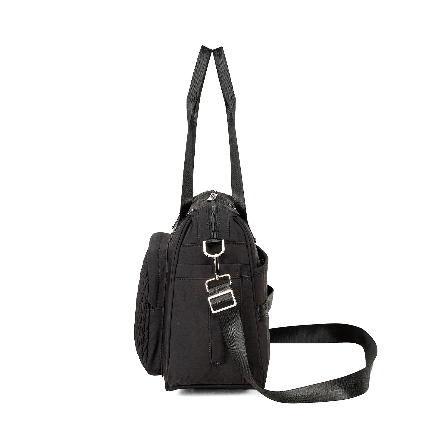 - Adjustable strap for cross-body or shoulder carry with premium SBS top zip closure.