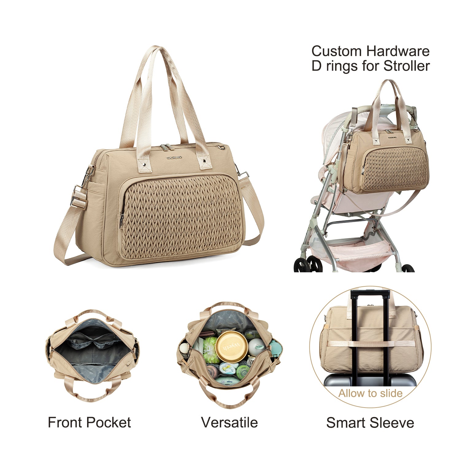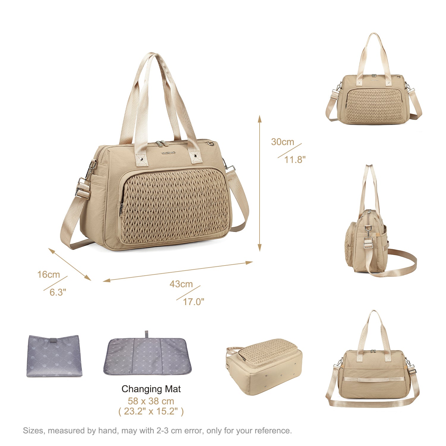 - Thoughtful pocket layout for organizing parents’ essentials, nappies, creams, and baby toys.