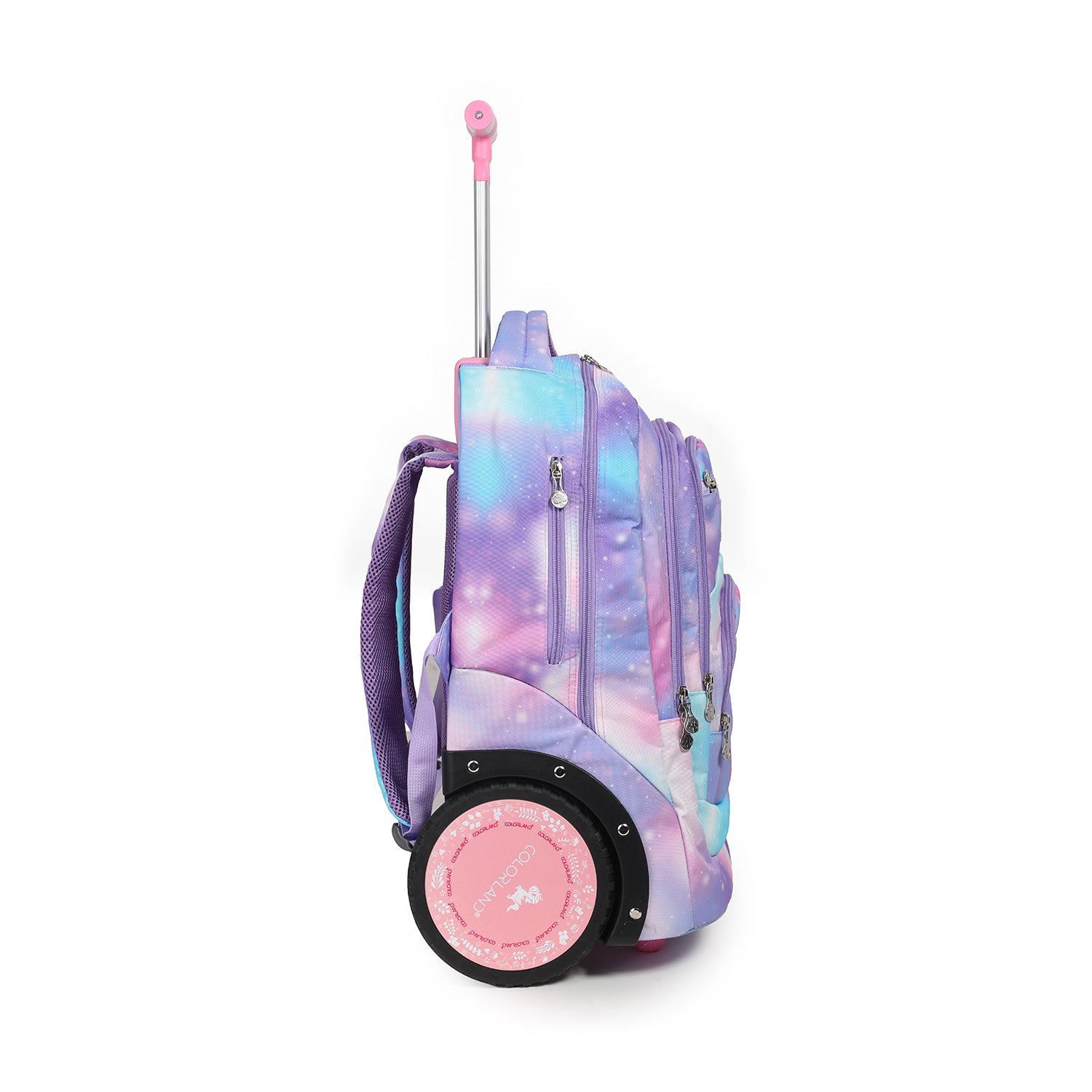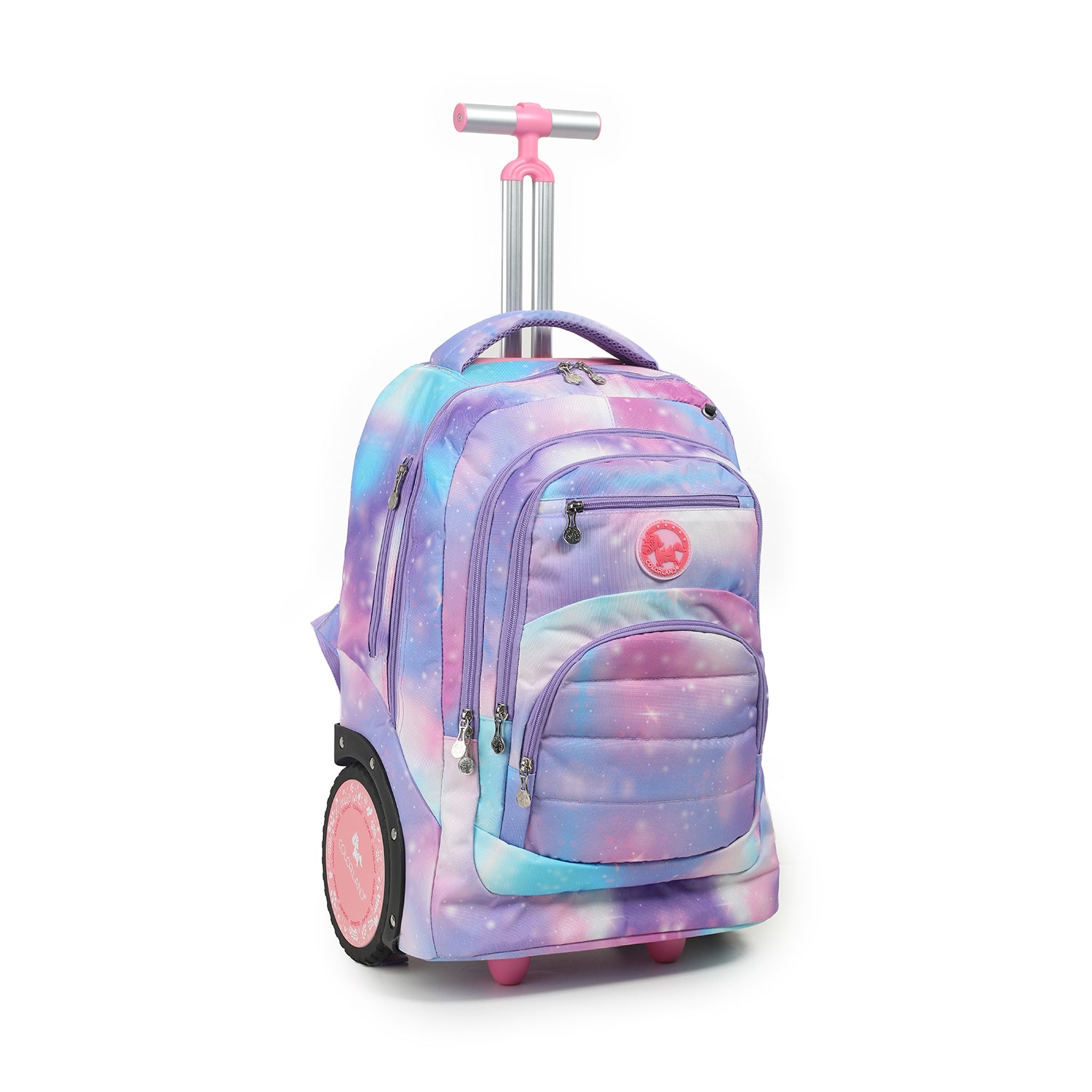 Prezzo unitario perColorland’s 19" trolley backpack set—featuring a wheeled school bag, 2-layer lunch box, and pencil case—is perfect for students aged 6–15 across countires. With a bold galaxy print, durable build, and smart storage, it's ideal back-to-school gear for daily learning and travel.